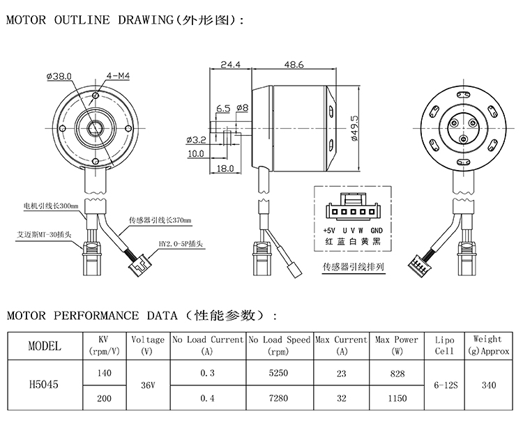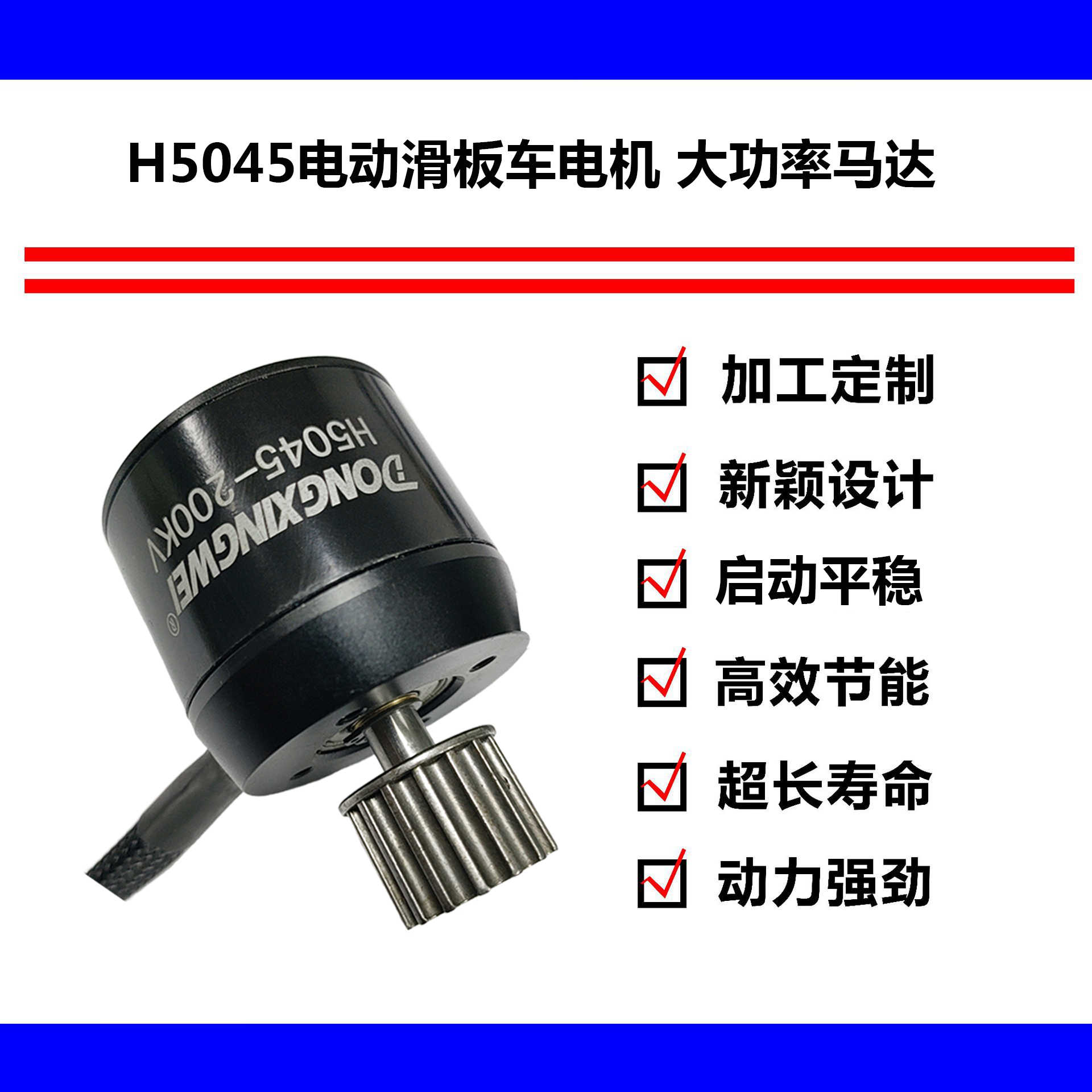 H5045实用于电动遥控滑板车,此电机内置霍尔板,单个电机载重60kg
